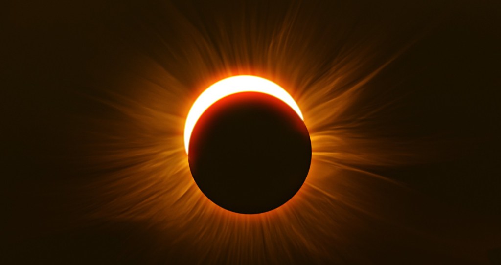 Description: An occasion when the sun looks like it is completely or partially covered with a dark circle because the moon is between the sun and the Earth. (Source: Google)